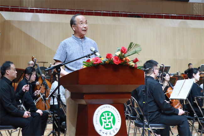 校黨委副書記程秀波指出,閔惠芬先生致力于二胡藝術(shù)的傳承保護、傳播交流,為弘揚民族藝術(shù)、傳承傳統(tǒng)文化做出了卓越貢獻。學(xué)校是河南省較早設(shè)立藝術(shù)學(xué)科、開展美育教育的高校之一,始終高度重視藝術(shù)學(xué)科發(fā)展和藝術(shù)教育工作,持續(xù)營造以文化人、以美育人的良好氛圍,先后獲批省級文化改革發(fā)展人才培訓(xùn)基地、省級藝術(shù)教育實驗中心、省級中華優(yōu)秀傳統(tǒng)文化傳承基地,并推出了一批高水平科研成果。舉辦閔惠芬藝術(shù)周,是深入學(xué)習(xí)貫徹黨的二十大精神,推動民族音樂文化實現(xiàn)創(chuàng)造性轉(zhuǎn)化、創(chuàng)新性發(fā)展的重要舉措,也是集中展示學(xué)校改革發(fā)展成就,提升學(xué)校影響力、競爭力、品牌力的良好契機。希望各位藝術(shù)家、各位學(xué)者對學(xué)校事業(yè)發(fā)展、對音樂學(xué)科建設(shè)多提寶貴意見,攜手將閔惠芬藝術(shù)周辦出特色、辦出水平、辦成品牌,打造成民族弓弦樂藝術(shù)的研究高地、閔惠芬精神的傳承高地、中華優(yōu)秀傳統(tǒng)文化的弘揚高地。