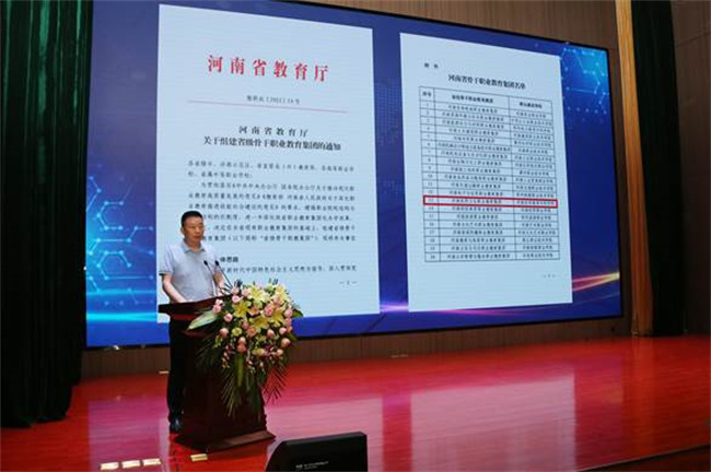 學(xué)校黨委書(shū)記花明致歡迎辭,代表學(xué)校向與會(huì)人員表示熱烈的歡迎和衷心的感謝,簡(jiǎn)要介紹了學(xué)校的發(fā)展歷程和辦學(xué)情況。他表示,省教育廳確定該校作為集團(tuán)牽頭建設(shè)單位,既是對(duì)學(xué)校的信任和支持,也是全校師生員工的期盼和夢(mèng)想,學(xué)校將以集團(tuán)成立為契機(jī),銳意進(jìn)取,開(kāi)拓創(chuàng)新,充分發(fā)揮集團(tuán)的橋梁紐帶作用,與集團(tuán)成員單位加強(qiáng)協(xié)作、共同努力,進(jìn)一步深化校校合作、校院合作、校企合作,全力打造具有鮮明特色的職教集團(tuán)品牌,為河南職業(yè)教育改革發(fā)展作出新的更大貢獻(xiàn)。