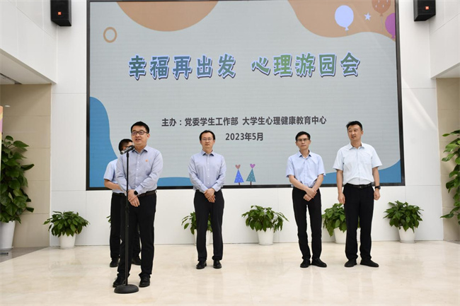 該校黨委委員、副校長(zhǎng)黃鵬在啟動(dòng)儀式上向全校師生提出三點(diǎn)建議:一是人有所責(zé),做自己健康的第一責(zé)任人。希望全校師生共同關(guān)注心理健康,每個(gè)人都要成為自己身心健康的第一責(zé)任人。二是調(diào)有所法,掌握有效的心理調(diào)適方法。希望同學(xué)們學(xué)會(huì)舒心減壓,學(xué)會(huì)感受生活的美好,學(xué)會(huì)聆聽與抱持,學(xué)會(huì)感恩與付出。三是困有所援,營(yíng)造全員心理育人氛圍。希望全體心理委員凸顯朋輩力量,自我關(guān)愛、互助互愛、主動(dòng)擔(dān)當(dāng),希望全體老師能以心暖心、以心潤(rùn)心、以心守心。