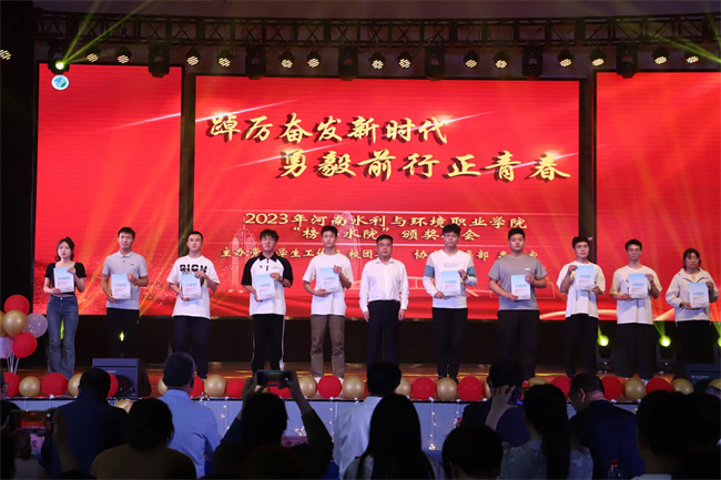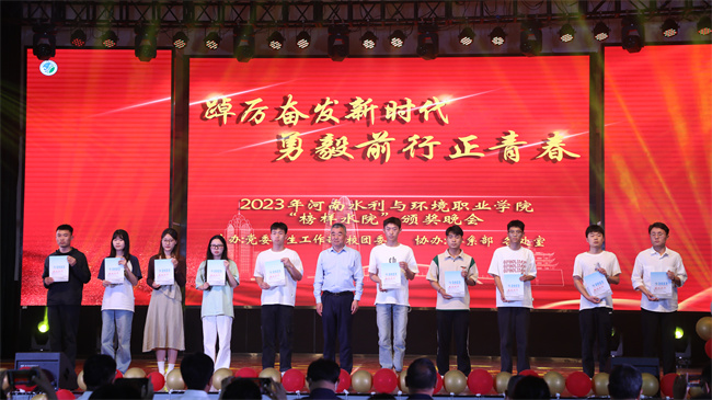 中新河南網(wǎng)5月24日電 為凝聚榜樣力量、激勵(lì)奮勇爭(zhēng)先,5月23日,由校黨委學(xué)生工作部和團(tuán)委共同主辦、各有關(guān)部門協(xié)辦的“踔厲奮發(fā)新時(shí)代,勇毅前行正青春”榜樣水院頒獎(jiǎng)晚會(huì)在河南水利與環(huán)境職業(yè)學(xué)院花園路校區(qū)大禮堂隆重舉行。校領(lǐng)導(dǎo)李廣慧、張凌杰、蔣彥成、張志淮參加并為獲獎(jiǎng)師生頒獎(jiǎng)。