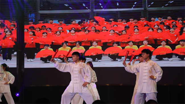 頒獎(jiǎng)晚會(huì)精彩紛呈,從“覺醒 擔(dān)當(dāng)”、“青春 奮斗”、“強(qiáng)國 有我”三個(gè)篇章進(jìn)行了演繹。唯美的《書簡(jiǎn)舞》、慷慨激昂的朗誦《紅旗渠精神》、精彩的豫劇表演《朝陽溝》、帥氣的街舞表演《耀舞青春》、激情的合唱《我的未來不是夢(mèng)》...每個(gè)節(jié)目都展現(xiàn)了水環(huán)學(xué)子的傲人風(fēng)采和良好精神面貌。最后,晚會(huì)在《星辰大!返母杪曋袌A滿落下帷幕。