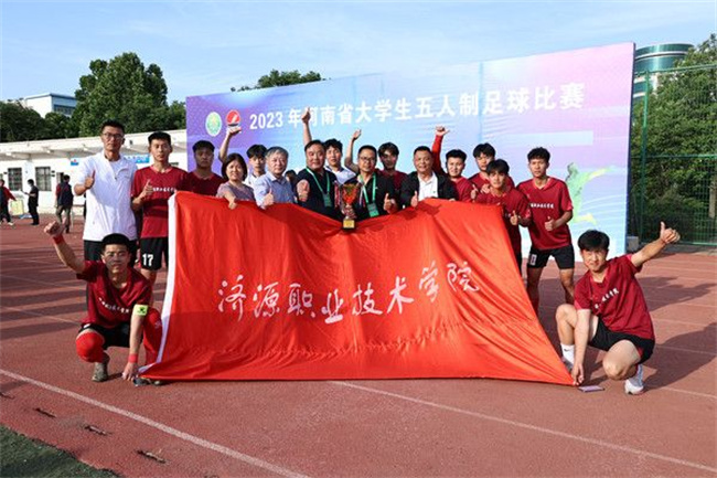 中新河南網(wǎng)5月25日電(李金鐘) 5月16-22日,2023年河南省大學(xué)生五人制足球比賽在黃河科技學(xué)院舉行。比賽中濟(jì)源職業(yè)技術(shù)學(xué)院隊(duì)員始終以飽滿的激情、昂揚(yáng)的斗志、堅(jiān)強(qiáng)的毅力全力以赴對(duì)待每一場(chǎng)比賽,經(jīng)過6輪的激烈角逐,最終在23支參賽隊(duì)伍中脫穎而出,榮獲河南省五人制足球?qū)?颇凶蛹捉M冠軍,創(chuàng)造了濟(jì)源職業(yè)技術(shù)學(xué)院歷史以來三大球項(xiàng)目的最佳戰(zhàn)績(jī),同時(shí)也創(chuàng)造了濟(jì)源男子足球參加河南省各項(xiàng)賽事的最佳戰(zhàn)績(jī)。為濟(jì)源職業(yè)技術(shù)學(xué)院建校三十周年獻(xiàn)上了一份厚禮。趙慶輝獲得優(yōu)秀教練員,隊(duì)員趙杰、吉浩杰獲得優(yōu)秀運(yùn)動(dòng)員。