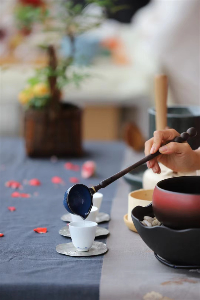 茶藝總監(jiān)玲玲和娜娜的煎茶表演美輪美奐,正好微微飄著小雨,恰似“煎茶坐看梨門雨,詩書是你,風(fēng)景也是你”的意境。