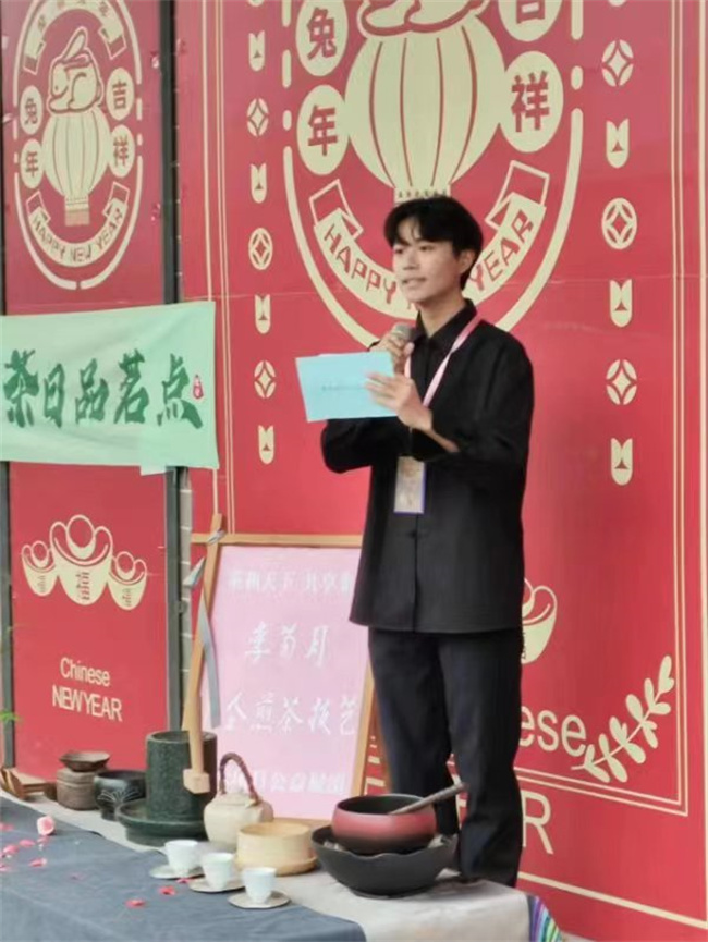 項(xiàng)目一組組長張永強(qiáng)朗誦了《七碗茶歌》,作為傳播茶仙文化的茶小仙,他已經(jīng)多次分享品飲心得。
