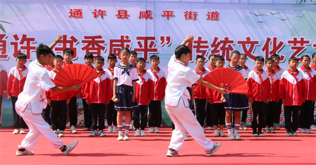 本次傳統(tǒng)文化藝術(shù)節(jié)現(xiàn)場(chǎng)演員和觀眾融為一體,舞蹈、朗誦、武術(shù)表演多種形式凸顯了傳統(tǒng)文化藝術(shù)節(jié)“大美通許·書(shū)香咸平”這一主題。