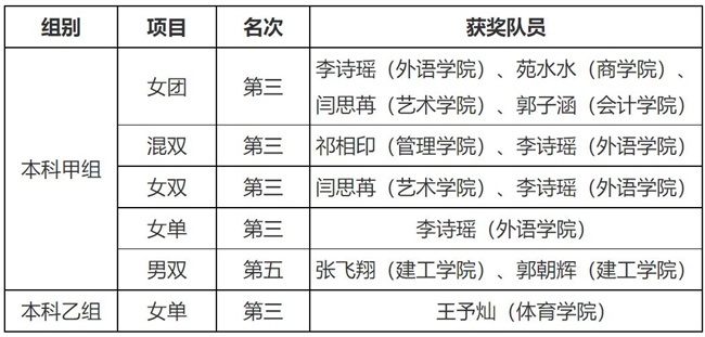 本屆比賽本科組共有來(lái)自全省近50所本科高校、500多名運(yùn)動(dòng)員參加,是歷屆大學(xué)生乒乓球比賽規(guī)模最大,參賽水平最高的一屆賽事。比賽中,鄭州升達(dá)經(jīng)貿(mào)管理學(xué)院隊(duì)員首次參加省賽,大家敢打敢拼,在比賽中團(tuán)結(jié)一致,沉著應(yīng)對(duì),頑強(qiáng)拼搏,連克強(qiáng)敵,展現(xiàn)出優(yōu)秀的比賽品質(zhì),取得了優(yōu)異成績(jī),創(chuàng)造了乒乓球隊(duì)參加省賽最好成績(jī),大幅度提高了學(xué)校乒乓球隊(duì)在省內(nèi)高校的知名度和地位,為學(xué)校爭(zhēng)得了榮譽(yù),為建校30周年校慶增光添彩!