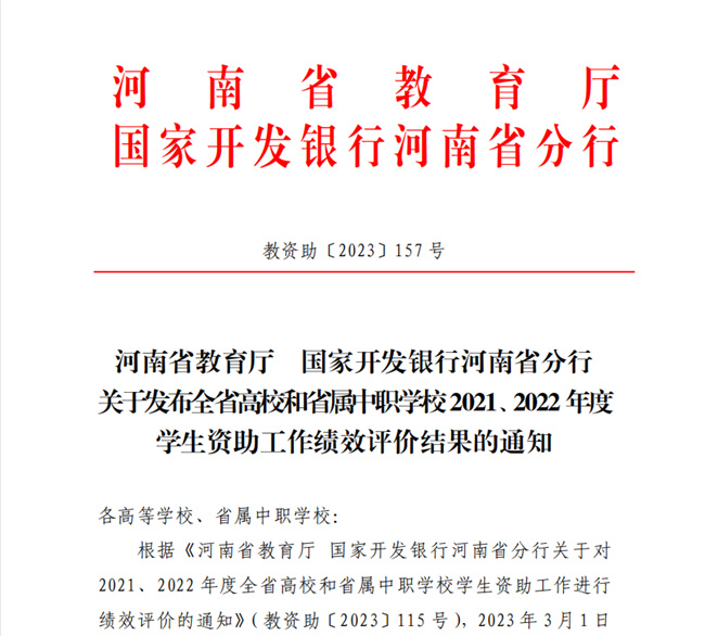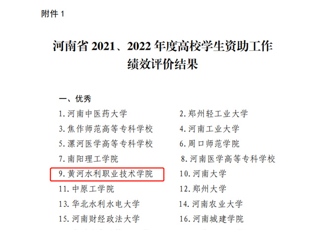 中新河南網(wǎng)5月31日電(董新法) 近日,河南省教育廳會同國家開發(fā)銀行河南省分行對全省高校和省屬中職學校2021、2022年度學生資助工作進行了全面績效評價。本次績效評價分為學校自評、專家組復評和實地復核三個階段,考核內(nèi)容包括基礎保障、日常管理、管理績效和附加評價等。在對155所高校的績效評價中,共有37所高校獲評“優(yōu)秀”等級,黃河水利職業(yè)技術(shù)學院位列其中。