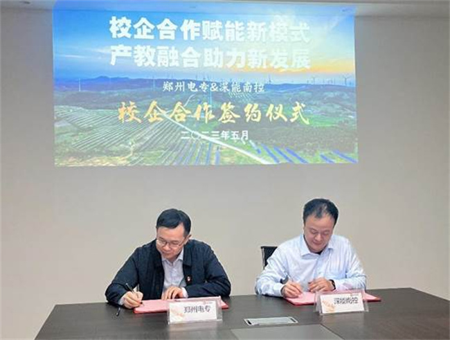 雙方在學(xué)生培養(yǎng)、就業(yè)推薦、職工培訓(xùn)、科研項目、技術(shù)攻關(guān)、專業(yè)建設(shè)等方面的合作進行了深入的探討,并對如何推進產(chǎn)學(xué)研深度融合、助力畢業(yè)生高質(zhì)量就業(yè)方面進一步深化合作達成了共識,雙方簽訂了校企合作協(xié)議,并確定將深能南京能源控股有限公司唐河光伏電站定為學(xué)校教師企業(yè)實踐基地和學(xué)生實習(xí)基地。隨后,能源學(xué)院教工黨支部與深能南控河南黨支部簽訂了支部黨建聯(lián)創(chuàng)協(xié)議。
