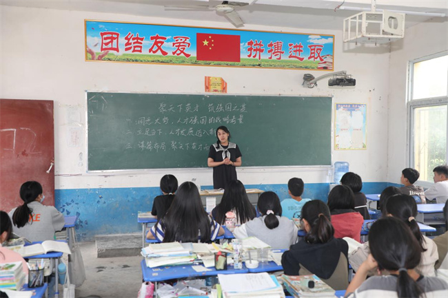 在東和店鎮(zhèn)初級(jí)中學(xué),藝術(shù)教學(xué)部主任陳錦杰講授了“高雅音樂(lè)進(jìn)課堂——古典音樂(lè)欣賞”藝術(shù)課,帶領(lǐng)同學(xué)們一起欣賞古典音樂(lè),走進(jìn)音樂(lè)藝術(shù),提升審美情趣。思想政治理論教學(xué)部教師劉妍以《聚天下英才 筑強(qiáng)國(guó)之基》為題進(jìn)行了理論宣講,為同學(xué)們講解了國(guó)家加快建設(shè)教育強(qiáng)國(guó)、科技強(qiáng)國(guó)、人才強(qiáng)國(guó)有關(guān)內(nèi)容,鼓勵(lì)同學(xué)們要懷抱夢(mèng)想,立志成才。