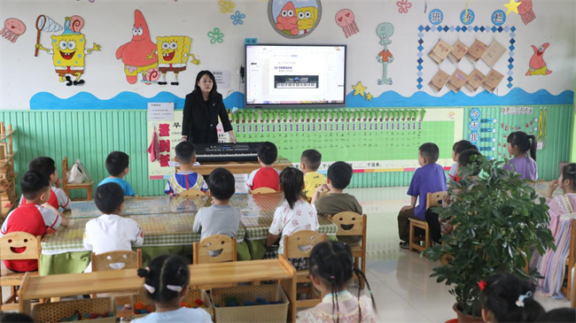 在東和店鎮(zhèn)中心幼兒園,藝術(shù)教學(xué)部副主任馬嬌為幼兒園的小朋友們進(jìn)行了電子琴教學(xué),教授孩子們認(rèn)識(shí)鍵盤、感受音高,學(xué)習(xí)音符和節(jié)奏,彈唱兒歌《小星星》,引導(dǎo)上臺(tái)彈奏電子琴,在孩子們心中播種下音樂(lè)的種子,期待萌芽生長(zhǎng)、花開(kāi)綻放。