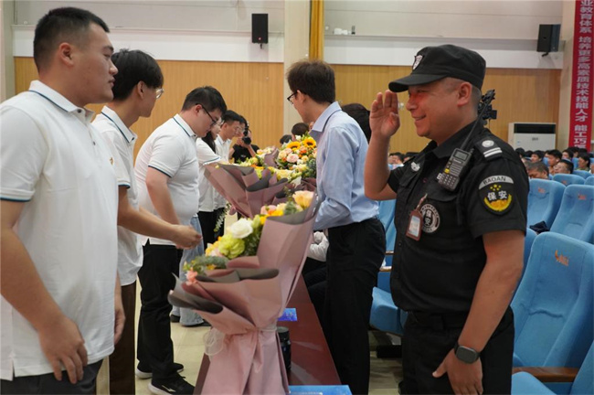 校黨委副書記、校長胡昊為畢業(yè)生代表頒發(fā)畢業(yè)證書。副校長周志琦宣讀2023屆優(yōu)秀畢業(yè)生表彰文件。校領(lǐng)導為優(yōu)秀畢業(yè)生代表頒發(fā)榮譽證書。畢業(yè)生代表向教師、輔導員代表,生活服務(wù)和后勤保衛(wèi)工作人員代表獻花表示感恩之情。