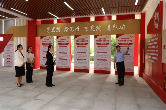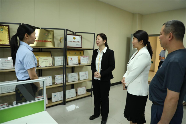調(diào)研組一行實地查看了學校“女工關愛室”、“聆心驛站”、吳娟娟智慧電力工作室、黨史教育基地、文化交流基地等場所,對學校女職工關愛陣地、思想政治教育陣地、文化交流陣地建設工作給予肯定。