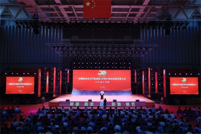 大會現(xiàn)場首發(fā)了建校30周年專題片《征途》,全面回顧了建校30年的發(fā)展歷程。30年時光荏苒,春華秋實,學(xué)校不忘初心,立德樹人,構(gòu)建了德智體美勞全面發(fā)展的育人體系,著力培養(yǎng)有理想、敢擔(dān)當(dāng)、能吃苦、肯奮斗、精技藝、會創(chuàng)新的新時代“新愚公”,打造了全省乃至全國知名的職業(yè)教育品牌。學(xué)校扎根濟(jì)源,服務(wù)發(fā)展,持續(xù)深化產(chǎn)教融合校企合作,建成了門類齊全的專業(yè)體系,探索形成了專業(yè)對接產(chǎn)業(yè)發(fā)展、課程對接崗位能力、實踐對接企業(yè)生產(chǎn)、服務(wù)對接社會需求的“四對接”辦學(xué)模式,打造了“政府主導(dǎo)、行業(yè)指導(dǎo)、企業(yè)參與、協(xié)同育人”的“濟(jì)職樣板”。學(xué)校錨定“創(chuàng)高升本”的奮斗目標(biāo),爭創(chuàng)一流,譜寫了濟(jì)職人自強不息、職教強市、科技賦能的壯麗篇章,榮獲全國職業(yè)教育先進(jìn)單位、全國畢業(yè)生就業(yè)典型經(jīng)驗高校(50強)、全國創(chuàng)新創(chuàng)業(yè)典型經(jīng)驗高校(50強)、全國高技能人才培訓(xùn)基地等國家級榮譽稱號。