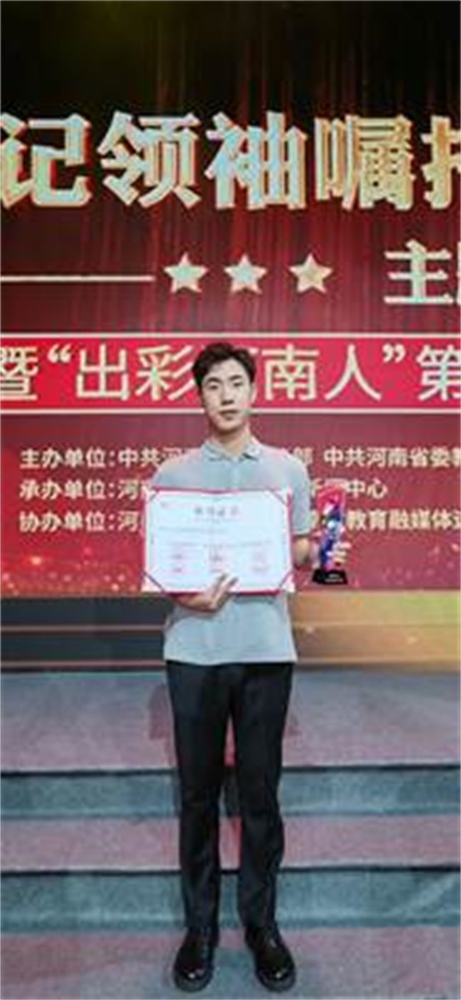 鄭州電力高等?茖W校校長楊建華、黨委學生工作部負責人參加了此次頒獎典禮。鄭州電力高等?茖W校優(yōu)秀學生師恩達榮獲“出彩河南人”第六屆最美大學生榮譽稱號,省委教育工委專職副書記尹洪斌為其頒獎。