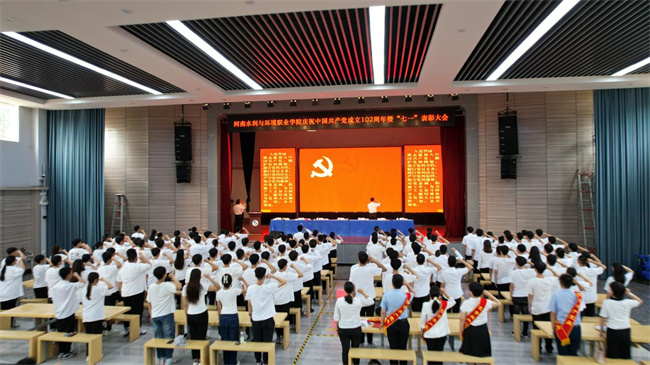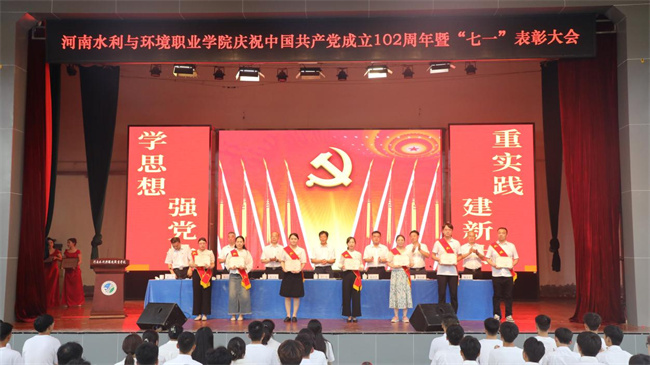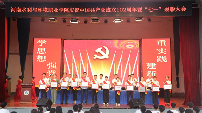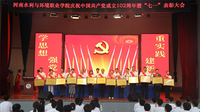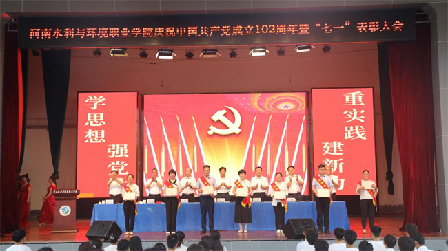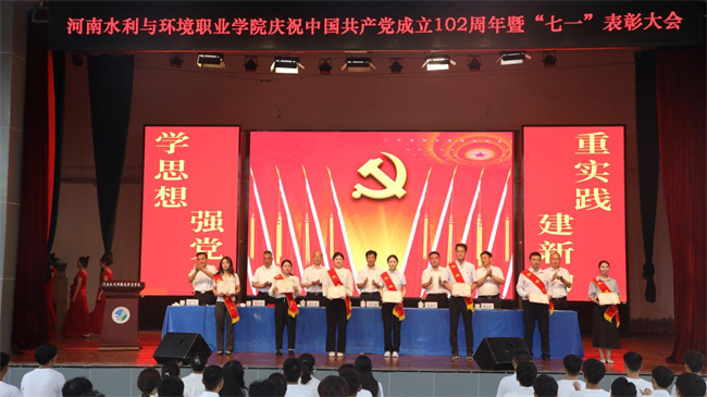 中新河南網(wǎng)6月29日電 6月27日,河南水利與環(huán)境職業(yè)學(xué)院在花園路校區(qū)禮堂隆重召開慶祝中國共產(chǎn)黨成立102周年暨“七一”表彰大會。黨委副書記、校長李廣慧出席會議并講話,校領(lǐng)導(dǎo)張凌杰、惠大眾、蔣彥成、張志淮、魏義軍、趙廣杰出席,學(xué)校全體在職黨員和新黨員、離退休黨員、入黨積極分子代表,“三全育人”工作先進(jìn)集體和先進(jìn)個人代表,文明單位和文明個人代表參加。大會由趙廣杰主持。大會在雄壯的國歌聲中拉開帷幕。全體參會人員起立,高唱《中華人民共和國國歌》。