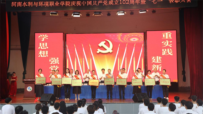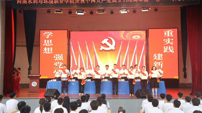 大會表彰了2022年度優(yōu)秀共產(chǎn)黨員、優(yōu)秀黨務(wù)工作者和先進(jìn)基層黨組織,2022年度“三全育人”工作先進(jìn)集體和先進(jìn)個人、2022年度文明單位和文明個人,并為受表彰的先進(jìn)集體和先進(jìn)個人代表頒發(fā)獎牌和榮譽(yù)證書。優(yōu)秀共產(chǎn)黨員代表機(jī)電工程系黨總支副書記王遠(yuǎn)志、優(yōu)秀黨務(wù)工作者代表經(jīng)濟(jì)管理系黨總支副書記肖文珍、先進(jìn)基層黨支部代表環(huán)境工程系教師黨支部副書記李曼、新黨員代表環(huán)境工程系教師黨支部宋薇、入黨積極分子代表思政教學(xué)部趙梓博先后發(fā)言。大會宣讀了“光榮在黨50年”老黨員名單和2023年上半年新發(fā)展黨員名單,舉行新黨員入黨宣誓及老黨員重溫入黨誓詞儀式。