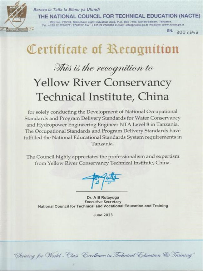 坦桑尼亞水利水電工程工程師NTA8級國家職業(yè)標(biāo)準(zhǔn)及配套的專業(yè)教學(xué)標(biāo)準(zhǔn)認(rèn)證,對于該校專業(yè)國際化建設(shè)、中國職業(yè)標(biāo)準(zhǔn)的推廣與輸出具有重要的實(shí)踐意義。坦桑尼亞新能源工程(水力)NTA8級國家職業(yè)標(biāo)準(zhǔn)已進(jìn)入尾聲,即將認(rèn)證。埃塞俄比亞大壩安全與集水技術(shù)工程師、灌溉與排水系統(tǒng)技術(shù)工程師國家職業(yè)標(biāo)準(zhǔn)正在研制中,也均為最高等級。接下來,水利工程學(xué)院將繼續(xù)聯(lián)合我國“走出去”企業(yè),深入推進(jìn)“中文+職業(yè)技能”項(xiàng)目,持續(xù)打造“大禹學(xué)院”人才培養(yǎng)品牌,助力“一帶一路”國家實(shí)現(xiàn)人才培養(yǎng)本土化,提高水利類專業(yè)國際化水平和“一帶一路”服務(wù)能力,促進(jìn)專業(yè)國際化交流與合作辦學(xué)水平的整體提升。