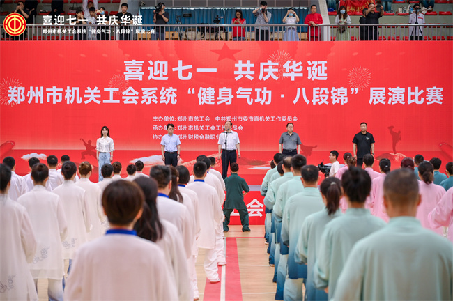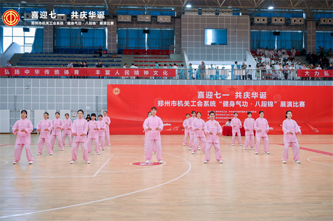 本次比賽共有來64 支代表隊(duì),1000 余名選手參賽。5月初,鄭州市總工會(huì)組織了為期 2 個(gè)月的“健身氣功·八段錦”培訓(xùn)及推廣普及。該院選派體育部教師王嘉锘作為代表,在總工會(huì)進(jìn)行專業(yè)系統(tǒng)的八段錦專業(yè)培訓(xùn),隨后,經(jīng)過該院工會(huì)組織號(hào)召,組建出一支50余人的八段錦比賽隊(duì)伍,并精益求精選派出20名優(yōu)秀的隊(duì)員參加工會(huì)的展演比賽。本次主動(dòng)請(qǐng)纓參加比賽的隊(duì)員有學(xué)院中層領(lǐng)導(dǎo)干部、有資深教師、有青年輔導(dǎo)員,展現(xiàn)出學(xué)院中層領(lǐng)導(dǎo)干部積極作為、敢于擔(dān)當(dāng)?shù)挠職馀c魄力和青年教師孜孜不倦、學(xué)無止境的精神品質(zhì)。最終該院獲得二等獎(jiǎng)的好成績。
