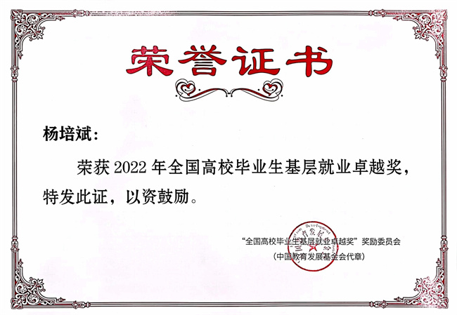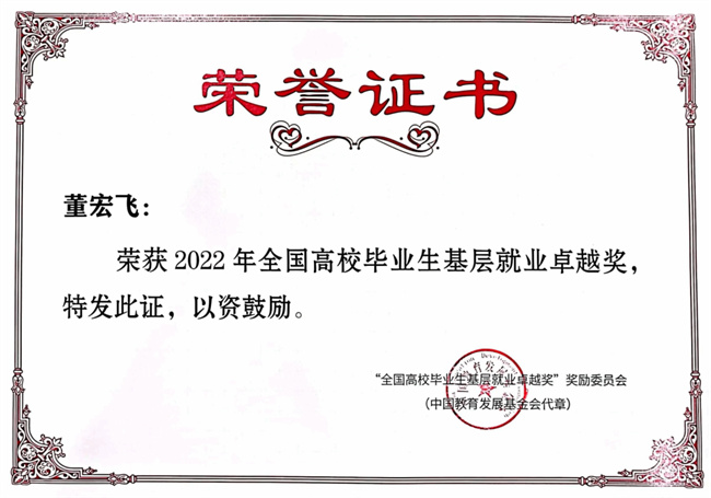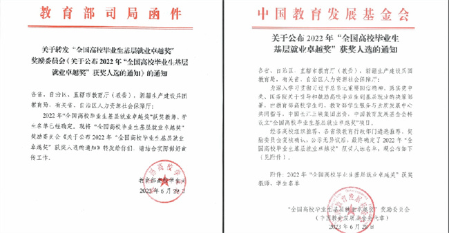 鄭州電力高等?茖W校是全省唯一一所推薦2名畢業(yè)生全部獲評2022年“全國高校畢業(yè)生基層就業(yè)卓越獎”的高校。“全國高校畢業(yè)生基層就業(yè)卓越獎”由教育部高校學生司、教育部學生服務與素質(zhì)發(fā)展中心共同指導,中國長江三峽集團出資,中國教育發(fā)展基金會設(shè)立;旨在獎勵普通高校赴基層就業(yè)并做出突出業(yè)績的畢業(yè)生和指導服務大學生赴基層就業(yè)工作有突出貢獻的教師。2023年1月,教育部部署各地各高校開展首屆“全國高校畢業(yè)生基層就業(yè)卓越獎”推薦活動,經(jīng)各省(市、自治區(qū))遴選推薦,從全國2700余所普通高校中確定獎勵畢業(yè)生398人,河南省21名畢業(yè)生入選,其中學校2名畢業(yè)生入選。