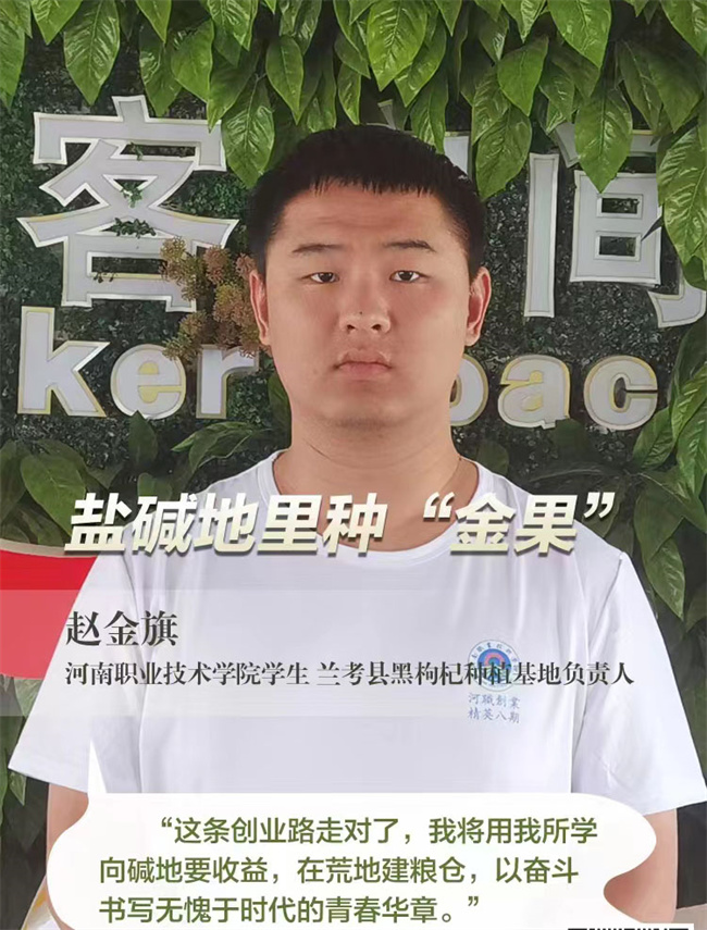 趙金旗今年22歲,是河南職業(yè)技術(shù)學(xué)院園林專業(yè)的學(xué)生,同時(shí)也是一名年輕的創(chuàng)業(yè)者。2018年,還在讀中職的他便開啟了創(chuàng)業(yè)之路,立志讓蘭考鹽堿地上長(zhǎng)出“金果”。