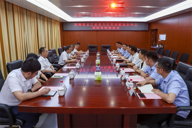 會上,雙方一起觀看了鄭州電力高等專科學(xué)校宣傳片。鄭州電力高等?茖W(xué)校校長楊建華致歡迎詞。國網(wǎng)黑龍江省電力公司技能培訓(xùn)中心(哈爾濱電力職業(yè)技術(shù)學(xué)院)主任金明華講話并表示,鄭州電力高等?茖W(xué)校與哈爾濱電力職業(yè)技術(shù)學(xué)院同屬國網(wǎng)公司系統(tǒng)內(nèi)的高等職業(yè)院校,雙方一脈同源,都有著悠久的辦學(xué)歷史和深厚的辦學(xué)底蘊(yùn),希望雙方能以此次調(diào)研為契機(jī),加強(qiáng)溝通交流,深化合作共贏,共同為“雙碳”目標(biāo)的實現(xiàn)和新型電力系統(tǒng)的建設(shè)添磚加瓦,為中國特色國際領(lǐng)先的全球能源互聯(lián)網(wǎng)建設(shè)貢獻(xiàn)力量,為辦好人民滿意的職業(yè)教育再立新功。隨后,雙方就人資、財務(wù)、后勤等領(lǐng)域工作進(jìn)行了深入的交流。