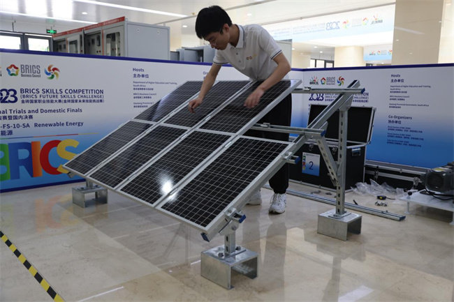 本次大賽共有來自全國(guó)23個(gè)省份37支代表隊(duì)參加決賽,競(jìng)賽主要考察可再生能源的項(xiàng)目實(shí)施、安裝調(diào)試、系統(tǒng)運(yùn)行、工程維護(hù)、故障排查等環(huán)節(jié),提高和檢驗(yàn)選手對(duì)可再生能源的行業(yè)標(biāo)準(zhǔn)及規(guī)范、安裝、常規(guī)器件等專業(yè)知識(shí)的理解及靈活應(yīng)用能力、熟練操作系統(tǒng)的能力、對(duì)疑難問題的現(xiàn)場(chǎng)解決等綜合創(chuàng)新發(fā)展能力。參賽選手需要在3個(gè)半小時(shí)內(nèi),獨(dú)立完成光伏板和支架結(jié)構(gòu)的安裝、測(cè)量,主機(jī)柜的接線、系統(tǒng)參數(shù)設(shè)置,整體系統(tǒng)的運(yùn)行調(diào)試。比賽執(zhí)行行業(yè)標(biāo)準(zhǔn)和相關(guān)技術(shù)要求,結(jié)合行業(yè)實(shí)際,體現(xiàn)新技術(shù);強(qiáng)調(diào)質(zhì)量和精度,注重基本技能和專業(yè)化操作,注重操作過程和質(zhì)量控制,考核選手的學(xué)習(xí)能力、理解能力、實(shí)踐操作能力、職業(yè)素養(yǎng)等職業(yè)綜合素質(zhì)。