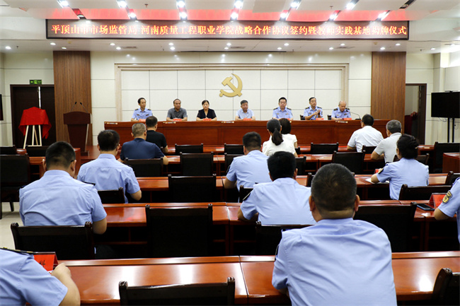李志萍在致辭中表示,市場監(jiān)督管理局肩負(fù)著我市質(zhì)量提升、品牌建設(shè)、標(biāo)準(zhǔn)引領(lǐng)、檢驗(yàn)檢測、認(rèn)證認(rèn)可等重任,而河南質(zhì)量工程職業(yè)學(xué)院的辦學(xué)特色、專業(yè)布局與此高度契合,雙方有著廣泛的合作潛力。此次簽約和揭牌是校地雙方踐行科教興國、質(zhì)量強(qiáng)國戰(zhàn)略的有力舉措,是深入貫徹落實(shí)《質(zhì)量強(qiáng)國建設(shè)綱要》、推動質(zhì)量強(qiáng)市戰(zhàn)略的具體行動,更是雙方多年友好合作關(guān)系的進(jìn)一步拓展和升華。期待雙方以此為契機(jī),發(fā)揮各自優(yōu)勢,建立緊密合作關(guān)系,圍繞科學(xué)研究、人才培養(yǎng)、公共服務(wù)平臺打造、質(zhì)量知識普及、質(zhì)量文化弘揚(yáng)等方面,在多層次、多領(lǐng)域,開展長期、穩(wěn)定、深度的合作,為平頂山“壯大新動能 奮進(jìn)百強(qiáng)市”提供強(qiáng)有力的人才和質(zhì)量支撐。