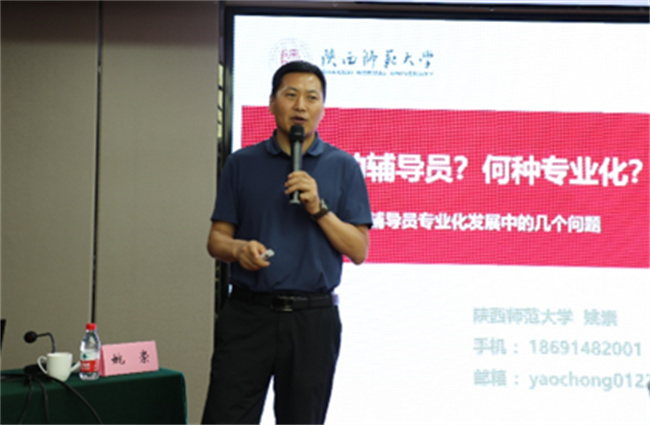 姚崇教授結(jié)合自身豐富的學(xué)生工作經(jīng)驗,從“誰的輔導(dǎo)員?”、“何種專業(yè)化”、“輔導(dǎo)員面臨的困境和挑戰(zhàn)”、“輔導(dǎo)員專業(yè)化成長的機(jī)理機(jī)制”四個方面進(jìn)行了深入探討,通過諸多真實的案例分析了輔導(dǎo)員如何從初級到高級到優(yōu)秀,從陌生到熟練到專業(yè)的過程。并著重強(qiáng)調(diào),高校輔導(dǎo)員應(yīng)該找準(zhǔn)職業(yè)定位,確立目標(biāo),不能將自己的職業(yè)定位局限于學(xué)生事務(wù)的管理者,應(yīng)該朝著科研、教學(xué)、研究方向發(fā)展,做學(xué)生事務(wù)管理工作的“專家”。