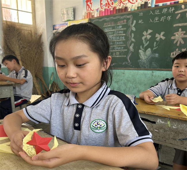 實(shí)踐團(tuán)到訪時(shí)正值暑期,實(shí)踐團(tuán)引導(dǎo)小朋友們一同學(xué)習(xí)和掌握普法教育、避災(zāi)防災(zāi)知識(shí)以及小學(xué)生急救知識(shí),增強(qiáng)小朋友們安全意識(shí),提高應(yīng)對突發(fā)狀況的能力。在美術(shù)手工課上,團(tuán)隊(duì)成員通過猜謎語的方式引出手工課的主要內(nèi)容:紅星月亮船。紅星月亮船代表著童真,也代表著美好的期盼。組合起來的黃色月亮船和紅色五星,呼應(yīng)著五星紅旗上的星星,通過趣味手工引導(dǎo)學(xué)生愛國愛黨。