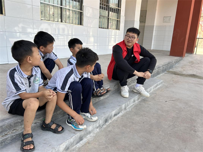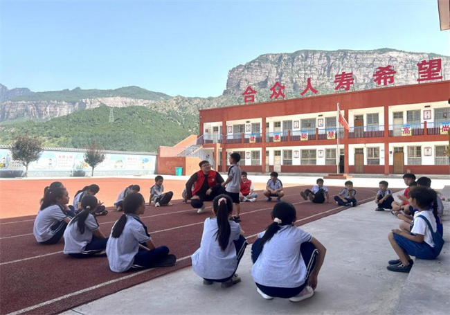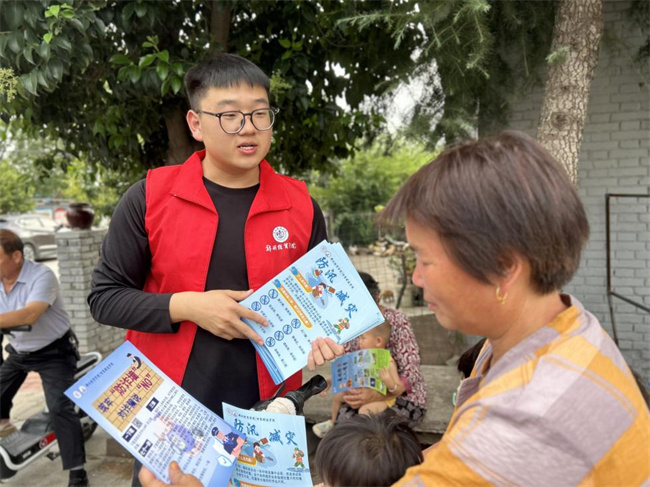 七月雨季頻發(fā),防汛是重點(diǎn)工作,專訪結(jié)束后,實(shí)踐團(tuán)在村民活動(dòng)廣場講解防溺水、防汛知識(shí),向村民分發(fā)自主設(shè)計(jì)的宣傳頁,并參與當(dāng)?shù)匮埠又驹阜⻊?wù)工作。