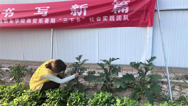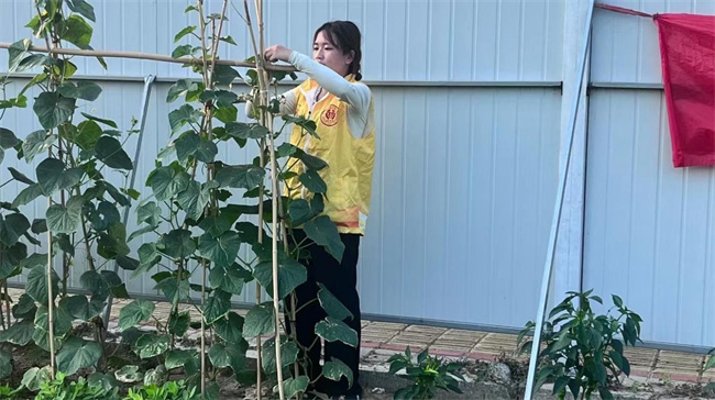 文雪珂同學查看蔬菜生長情況