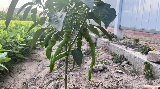 東川村生長良好的線椒清掃村莊街道衛(wèi)生