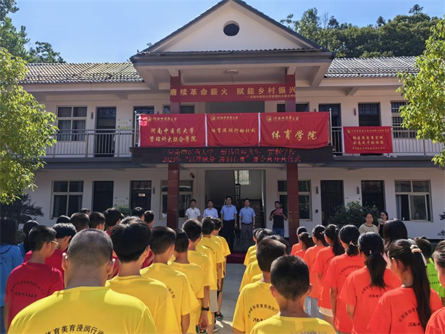 中新河南網(wǎng)7月21日電(王君樂) 為深入學(xué)習(xí)貫徹黨的二十大精神,引導(dǎo)青年學(xué)生堅定責(zé)任擔(dān)當(dāng),把課堂學(xué)習(xí)和社會實踐緊密結(jié)合。2023年7月9日至15日,河南中醫(yī)藥大學(xué)體育學(xué)院以獲批體育浸潤行動計劃為契機,以“山”為主線追尋總書記河南足跡,前往信陽市新縣代咀九年一貫制學(xué)校開展“以體筑夢,浸潤心靈”暑期“三下鄉(xiāng)”社會實踐活動,帶領(lǐng)組織老區(qū)的孩子們一起強身健體、傳承文化、啟心育智、厚植情懷。