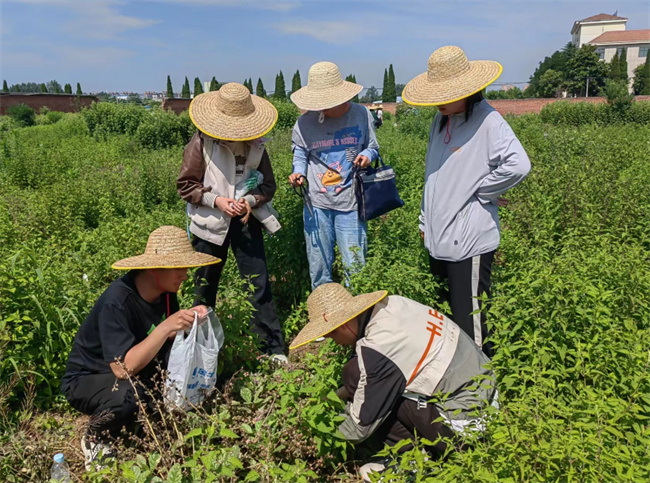 濟(jì)源職業(yè)技術(shù)學(xué)院大學(xué)生正在采地黃種