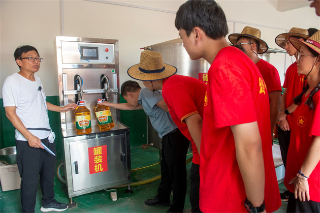 中新河南網(wǎng)7月30日電(趙珊珊) 暑期,濟源坡頭鎮(zhèn)柳峪溝鄉(xiāng)村振興教育基地迎來參觀學習熱潮。7月26日,鄭州大學的二十余名師生來到這里,聽駐村書記講脫貧攻堅史,賞盛夏美麗“村”光,體驗油料加工、田間勞動,感受鄉(xiāng)村振興變化。