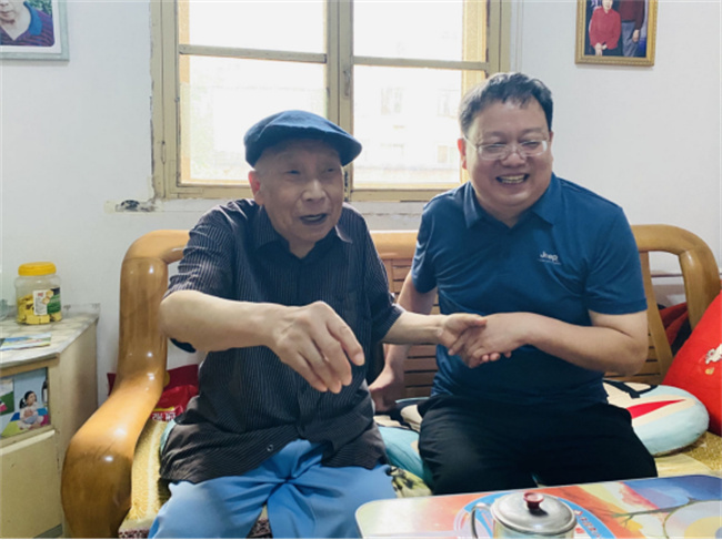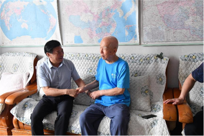 31日上午9時(shí),劉源一行走訪慰問李梅蘭(抗美援朝復(fù)轉(zhuǎn)軍人)、邵戰(zhàn)國(guó)(核基地復(fù)轉(zhuǎn)軍人代表)、祝以廉、張喜明、楊金旺等復(fù)轉(zhuǎn)軍人代表。校領(lǐng)導(dǎo)關(guān)切的詢問他們的生活狀況,并向他們致以節(jié)日的祝福。