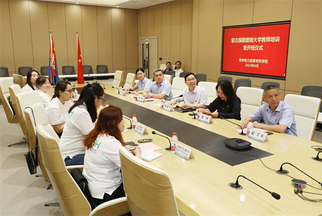 中新河南網(wǎng)8月10日電(阿依古麗·艾力江) 8月7日上午,鄭州電力高等專(zhuān)科學(xué)校舉辦了蒙古額圖根大學(xué)教師培訓(xùn)班開(kāi)班儀式。此次培訓(xùn)是該校與蒙古額圖根大學(xué)合作成立“蒙古教師培訓(xùn)中心”后的首次培訓(xùn)。