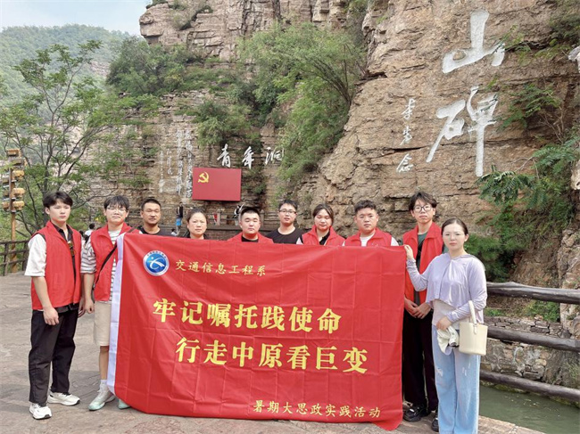 8月10日交通信息工程系紅旗渠實(shí)踐隊(duì)深入安陽(yáng)市紅旗渠開(kāi)展“牢記囑托踐使命 行走中原看巨變”暑期大思政實(shí)踐活動(dòng)。紅旗渠實(shí)踐隊(duì)的隊(duì)員們先后來(lái)到紅旗渠紀(jì)念館、分水閘、青年洞進(jìn)行實(shí)地學(xué)習(xí)。在參觀紅旗渠紀(jì)念館過(guò)程中,實(shí)踐隊(duì)邀請(qǐng)到紅旗渠講解員為同學(xué)們生動(dòng)講述修渠故事。隊(duì)員們與講解員進(jìn)行深入交流,并跟隨她重溫了林縣人民苦戰(zhàn)十個(gè)春秋,僅靠一錘、一釬、一雙手,在太行山的懸崖絕壁上修成人工天河紅旗渠的艱苦歷程,切實(shí)感受到了林縣人不認(rèn)命、不服輸、敢于戰(zhàn)天斗地的英雄氣概和誓把河山重安排的豪情壯志。