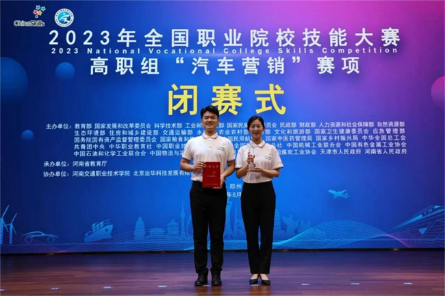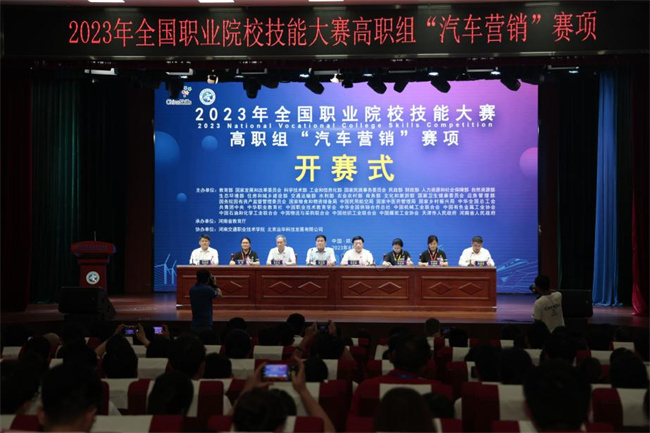中新河南網(wǎng)8月26日電(馬雪剛 葉展 徐國瑞 劉月 楊雨 任鈺瑩 毛天瑞) 8月23至25日,2023年全國職業(yè)院校技能大賽(高職組)“汽車營銷”賽項在河南交通職業(yè)技術(shù)學(xué)院舉行。河南省教育廳二級巡視員董玉民出席開賽式并宣布大賽開賽,河南省教育廳職業(yè)教育與成人教育處二級調(diào)研員史文生出席閉賽式并宣布大賽閉賽。全國汽車職業(yè)教育教學(xué)指導(dǎo)委員會副主任委員李怡民、大賽專家組組長張紅英、裁判組組長李燕、監(jiān)督仲裁組組長王麗霞,教育部職業(yè)教育發(fā)展中心高級宣傳策劃經(jīng)理、教育部大賽辦特派監(jiān)督仲裁員汪莎莎,北京運華科技發(fā)展有限公司總經(jīng)理廖明,河南交通職業(yè)技術(shù)學(xué)院黨委書記劉志偉、校長焦宏濤等領(lǐng)導(dǎo)和專家出席大賽活動,來自全國各省、自治區(qū)、直轄市和新疆生產(chǎn)建設(shè)兵團的68支參賽隊伍320多名師生參加賽事活動。