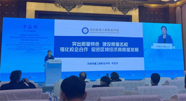 李志萍以《突出質(zhì)量特色、建設質(zhì)量名校、強化校企合作,促進區(qū)域經(jīng)濟高質(zhì)量發(fā)展》為題作主題演講,介紹了學院的基本情況、歷史沿革、辦學特色,交流了學院聚焦質(zhì)量強國戰(zhàn)略和職業(yè)教育改革發(fā)展需要,突出學院質(zhì)量特色服務區(qū)域經(jīng)濟發(fā)展,培養(yǎng)職業(yè)技能和質(zhì)量素養(yǎng)的復合型技術技能人才的經(jīng)驗做法。一是在專業(yè)設置上突出學院質(zhì)量特色,融入地方發(fā)展需求;二是依托校企合作服務平臺,提升學生實踐技能;三是努力培養(yǎng)具有職業(yè)技能和質(zhì)量素養(yǎng)的復合型技術技能人才;四是加強校園質(zhì)量文化建設,開辟質(zhì)量教育新境界;五是政行校企融合,服務地方經(jīng)濟發(fā)展。