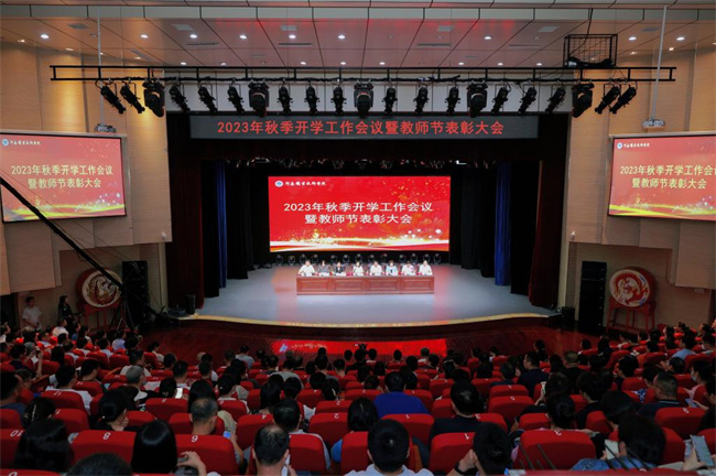 中新河南網(wǎng)9月10日電(趙宇輝) 9月7日下午,河南職業(yè)技術(shù)學(xué)院在音樂(lè)廳召開(kāi)2023年秋季開(kāi)學(xué)工作會(huì)議暨教師節(jié)表彰大會(huì)。會(huì)議對(duì)學(xué)校做出突出貢獻(xiàn)的先進(jìn)集體和個(gè)人進(jìn)行了表彰,校長(zhǎng)梅樂(lè)堂作2023年秋季工作報(bào)告,黨委書(shū)記李桂貞作總結(jié)講話(huà)。學(xué)校領(lǐng)導(dǎo)班子成員、中層副職以上干部、教師代表參加會(huì)議。會(huì)議由黨委副書(shū)記、紀(jì)委書(shū)記田華主持。