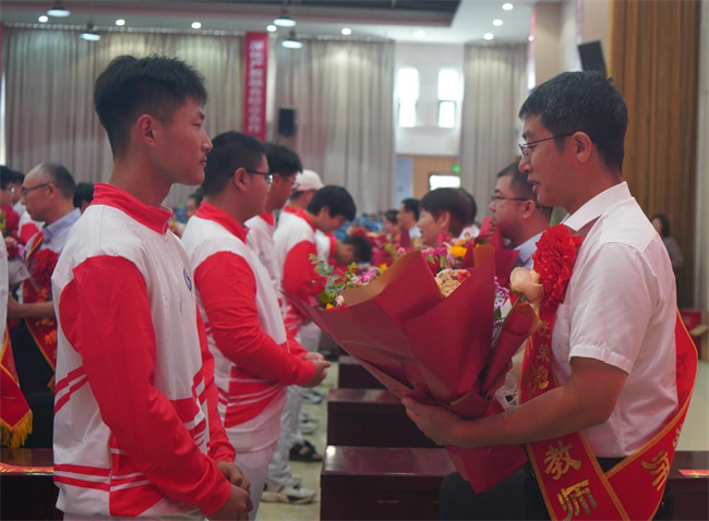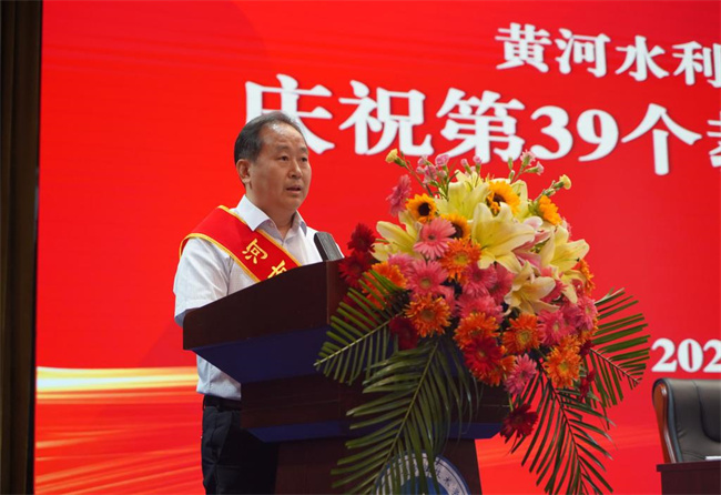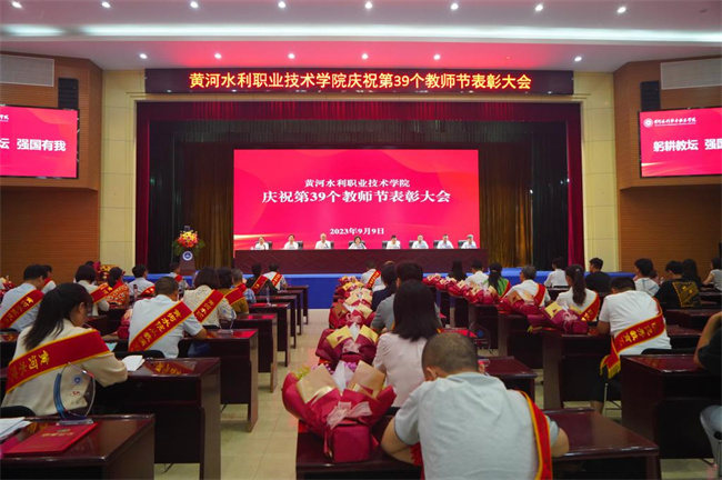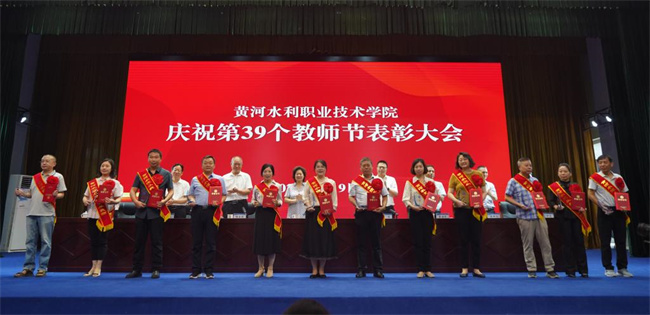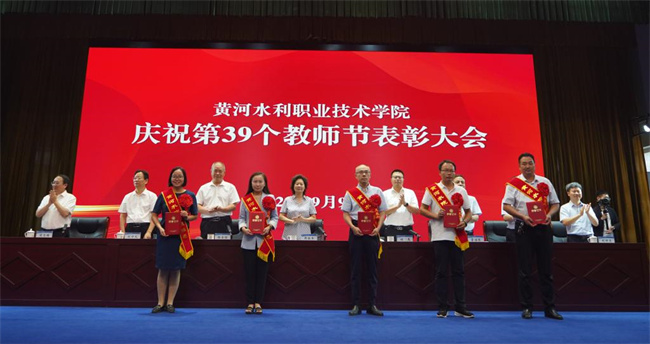 胡昊宣讀了《關(guān)于表彰河南省教育系統(tǒng)先進(jìn)集體和先進(jìn)個(gè)人的決定》《關(guān)于表彰開封市教育系統(tǒng)先進(jìn)集體和先進(jìn)個(gè)人的決定》《中共黃河水利職業(yè)技術(shù)學(xué)院委員會(huì)關(guān)于表彰第三屆教職工道德模范的決定》表彰文件。周志琦宣讀了《關(guān)于表彰2023年度優(yōu)秀教師和優(yōu)秀教育工作者的決定》《關(guān)于表彰2023年從事教育教學(xué)工作滿三十年教師的決定》表彰文件。學(xué)生代表向獲獎(jiǎng)教師代表獻(xiàn)花,表達(dá)了學(xué)子對老師們的崇高敬意和誠摯祝福 。河南省優(yōu)秀教師、環(huán)境工程學(xué)院博士姚新鼎,學(xué)校優(yōu)秀教師代表李梅華,學(xué)生代表李雪分別進(jìn)行了發(fā)言。