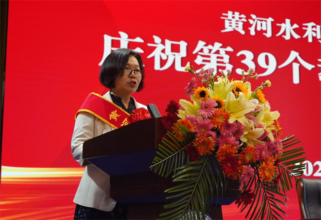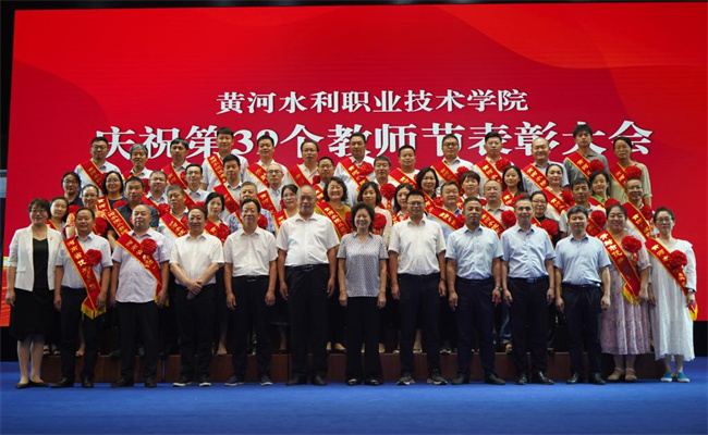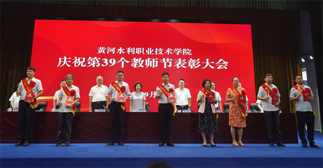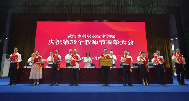 胡昊宣讀了《關(guān)于表彰河南省教育系統(tǒng)先進集體和先進個人的決定》《關(guān)于表彰開封市教育系統(tǒng)先進集體和先進個人的決定》《中共黃河水利職業(yè)技術(shù)學(xué)院委員會關(guān)于表彰第三屆教職工道德模范的決定》表彰文件。周志琦宣讀了《關(guān)于表彰2023年度優(yōu)秀教師和優(yōu)秀教育工作者的決定》《關(guān)于表彰2023年從事教育教學(xué)工作滿三十年教師的決定》表彰文件。學(xué)生代表向獲獎教師代表獻花,表達了學(xué)子對老師們的崇高敬意和誠摯祝福 。河南省優(yōu)秀教師、環(huán)境工程學(xué)院博士姚新鼎,學(xué)校優(yōu)秀教師代表李梅華,學(xué)生代表李雪分別進行了發(fā)言。