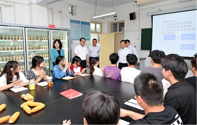 會(huì)前,省委教育工委副書記、省教育廳黨組書記、廳長(zhǎng)毛杰,省委農(nóng)辦主任、省農(nóng)業(yè)農(nóng)村廳黨組書記、廳長(zhǎng)孫巍峰一行,視察了校園、插花實(shí)訓(xùn)室、動(dòng)植物標(biāo)本實(shí)驗(yàn)室、種子實(shí)驗(yàn)室、土壤肥料實(shí)驗(yàn)室,查看了學(xué)生軍訓(xùn)情況,并慰問了學(xué)生,對(duì)學(xué)院的實(shí)驗(yàn)室建設(shè)給予高度評(píng)價(jià),對(duì)學(xué)院為“三農(nóng)”發(fā)展和糧食安全作出的貢獻(xiàn)表示認(rèn)可,并和部分學(xué)院領(lǐng)導(dǎo)班子成員合影。(河南農(nóng)業(yè)職業(yè)學(xué)院供稿)