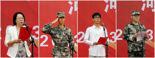 優(yōu)秀教師代表食品與化工學院副院長王霞教授、施訓教官代表葛旭陽同學、老生代表食品與化工學院食品營養(yǎng)與健康專業(yè)楊義豪同學、新生代表建筑工程學院建筑室內(nèi)設計專業(yè)邵奕寧同學分別進行了發(fā)言。