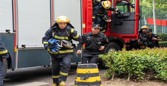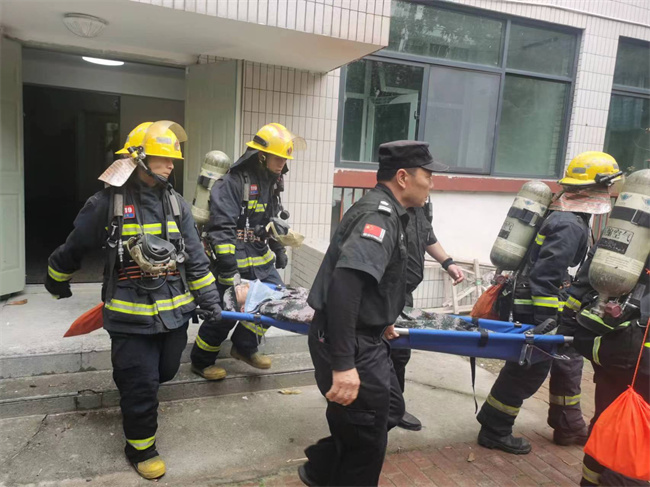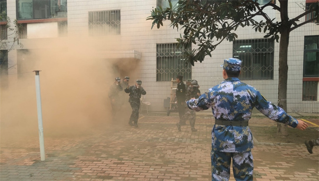 隨后,學(xué)校組織開(kāi)展了應(yīng)急疏散逃生演練,演練假設(shè)學(xué)校宿舍樓發(fā)生火災(zāi),學(xué)校迅速啟動(dòng)應(yīng)急預(yù)案,各值班崗位迅速到位,緊急通知學(xué)生疏散逃生,同學(xué)們從學(xué)生宿舍安全出口有序疏散逃生。疏散中,同學(xué)們用濕毛巾捂住口鼻,彎腰低姿快速撤離到運(yùn)動(dòng)場(chǎng),整個(gè)疏散過(guò)程安全有序、快速高效。在清點(diǎn)人員時(shí)發(fā)現(xiàn)二公寓2218宿舍一名男生被困宿舍未能安全撤離,隨后消防車(chē)趕到,開(kāi)始滅火救援,最后被困人員被安全救出。