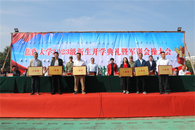 隨后,新生代表、在校生代表、教師代表先后發(fā)言。校黨委委員、副校長劉際平宣讀了《焦作大學關于表彰2023級軍訓工作先進集體、先進個人的決定》。校領導和部隊首長為軍訓工作先進集體、優(yōu)秀教官、優(yōu)秀指導員代表頒獎,山陽區(qū)武裝部部長黃應龍作了講話。