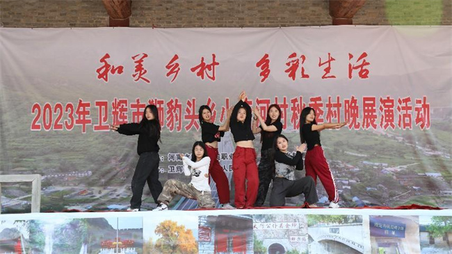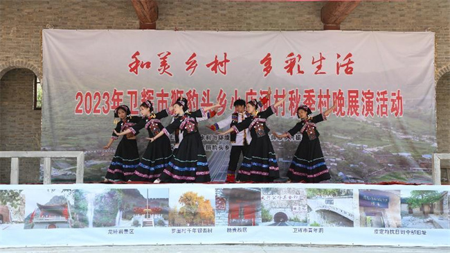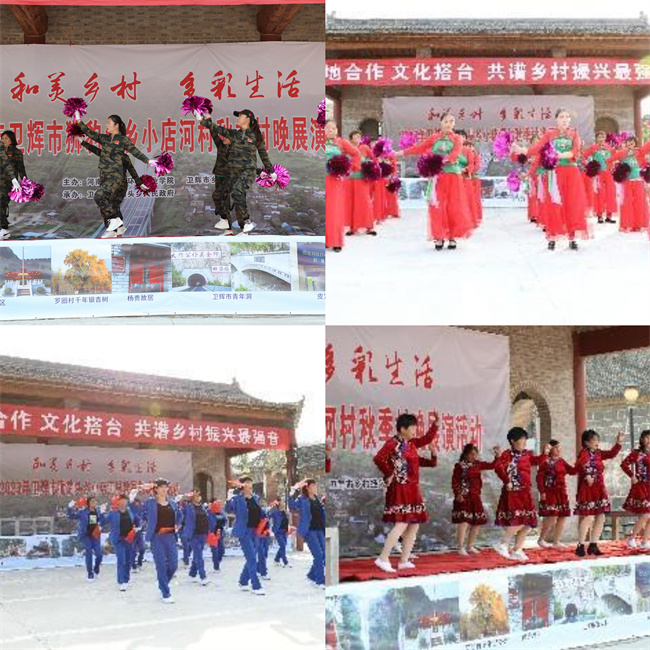 衛(wèi)輝市獅豹頭鄉(xiāng)小店河村、砂掌村、后龍臥村、羅圈村、前龍臥村、白寺村等文藝團隊相繼表演了舞蹈《開門紅》、廣場舞《祝福祖國》《五星紅旗迎風飄揚》《喜樂年華》《中國紅》《中國美》《多少次想起你》《今天是你的生日我的中國》、腰鼓《火火的中國、火火的時代》、手花舞《紅歌聯(lián)唱》、戲曲《王山要飯》等節(jié)目。