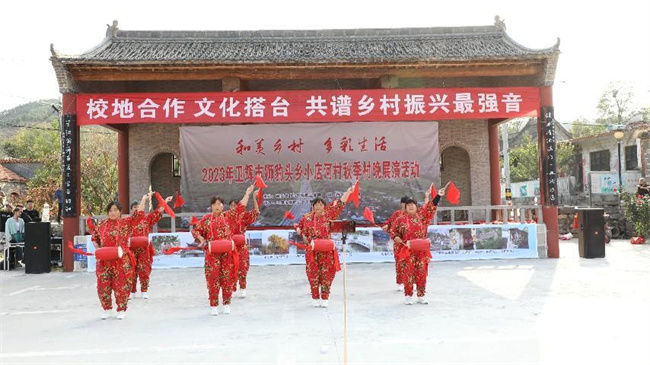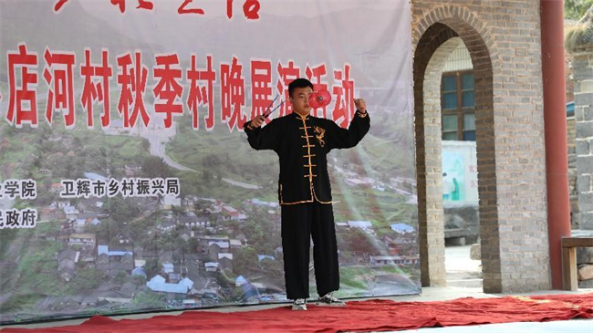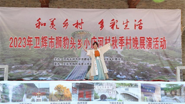 此次“和美鄉(xiāng)村、多彩生活”2023衛(wèi)輝市獅豹頭鄉(xiāng)小店河村秋季村晚展演活動由河南水利與環(huán)境職業(yè)學院、衛(wèi)輝市鄉(xiāng)村振興局聯(lián)合主辦,衛(wèi)輝市獅豹頭鄉(xiāng)人民政府承辦,共編排了24個節(jié)目。既有河南水利與環(huán)境職業(yè)學院學生的傾情演出,又有獅豹頭鄉(xiāng)12個鄉(xiāng)村文藝團隊的精彩演繹。通過舞蹈、廣場舞表演、歌曲、戲曲演唱、武術、抖空竹才藝展示等多種表現(xiàn)形式,演繹了一場精美的視聽盛宴,為鄉(xiāng)村文化的多元化發(fā)展注入了文化凝聚力和精神推動力,使群眾在文化盛宴中共享鄉(xiāng)村振興發(fā)展成果。精彩的演出將展演活動推向一波波高潮,現(xiàn)場觀眾不斷揮舞手中的國旗,營造了歡快愉悅的氛圍,展演活動取得圓滿成功。