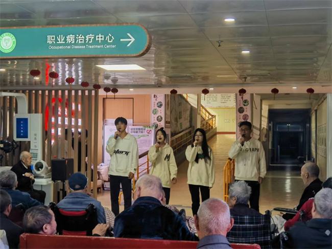 10月19日,濟(jì)源職業(yè)技術(shù)學(xué)院醫(yī)學(xué)護(hù)理學(xué)院黨總支、濟(jì)源市第三人民醫(yī)院和校企合作單位濟(jì)源市康復(fù)家園貿(mào)易有限公司共同在濟(jì)源市第三人民醫(yī)院門診大廳舉辦“我們的節(jié)日·重陽(yáng)”“九九重陽(yáng)節(jié)·濃濃敬老情”活動(dòng)。志愿者給年邁的老人剪指甲、聊天和按摩等,傾聽(tīng)老人講述過(guò)去的故事。之后,志愿者又開(kāi)展了文藝展演,門診大廳聚滿了前來(lái)觀看的老人及家屬,活動(dòng)現(xiàn)場(chǎng)精彩紛呈、熱鬧非凡,將溫暖的關(guān)懷注入到每個(gè)老人的心田。
